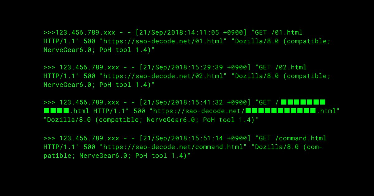 【サーバーログから、違和感のある部分を抜き出してある。これがきっと犯人につながる手がかりになるはずだ。知識なんかなくても大丈夫。知っていることを繋ぎ合わせれば必ず答えにたどり着けるはずだ!では諸君、健闘を祈る!#SAO_DECODE